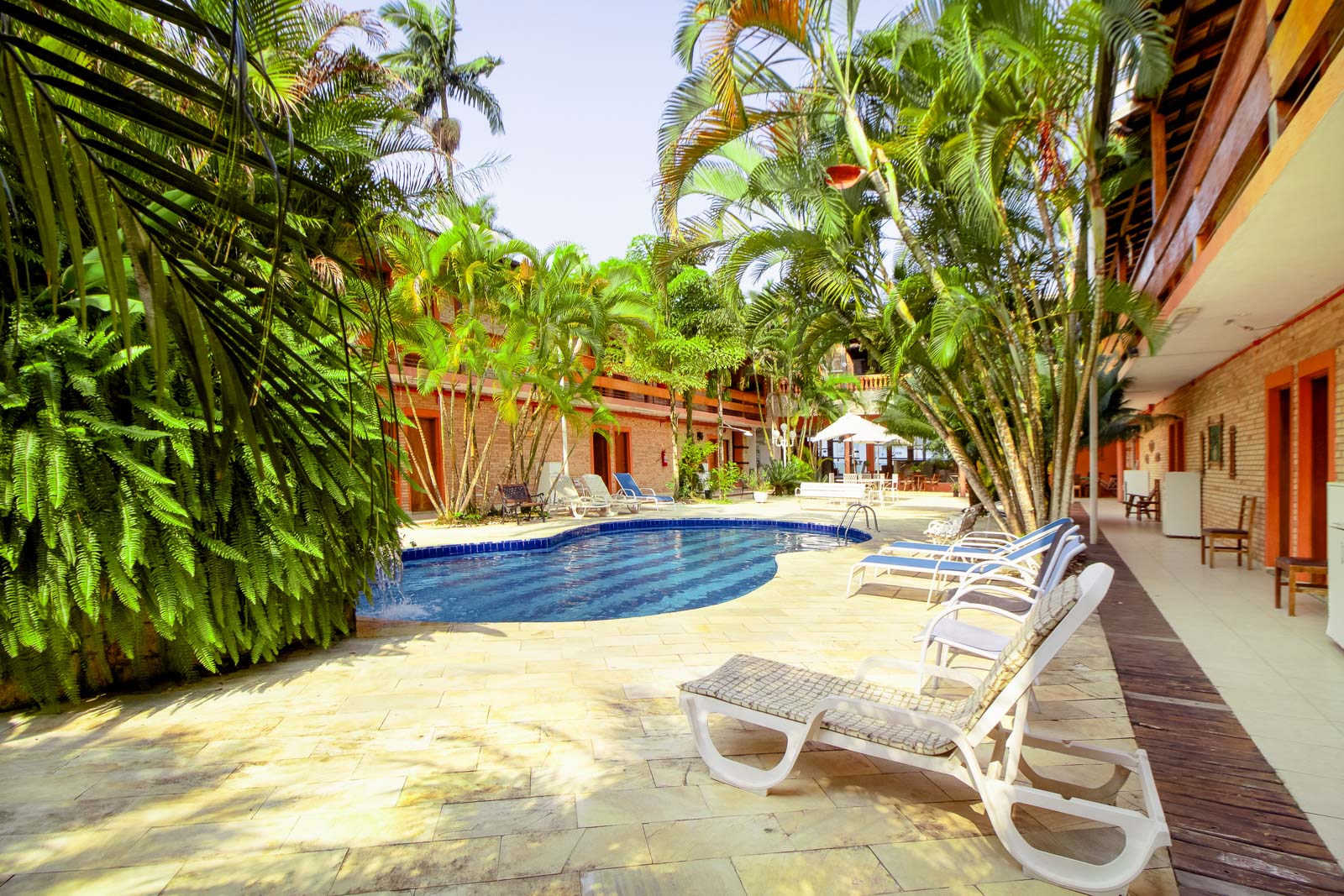 Desfrute de momentos únicos em nossa área de lazer, pensada para o seu descanso e bem-estar. Um ambiente arborizado, com piscina refrescante e confortáveis cadeiras de sol, perfeito para relaxar, renovar as energias e aproveitar cada instante da sua estadia.