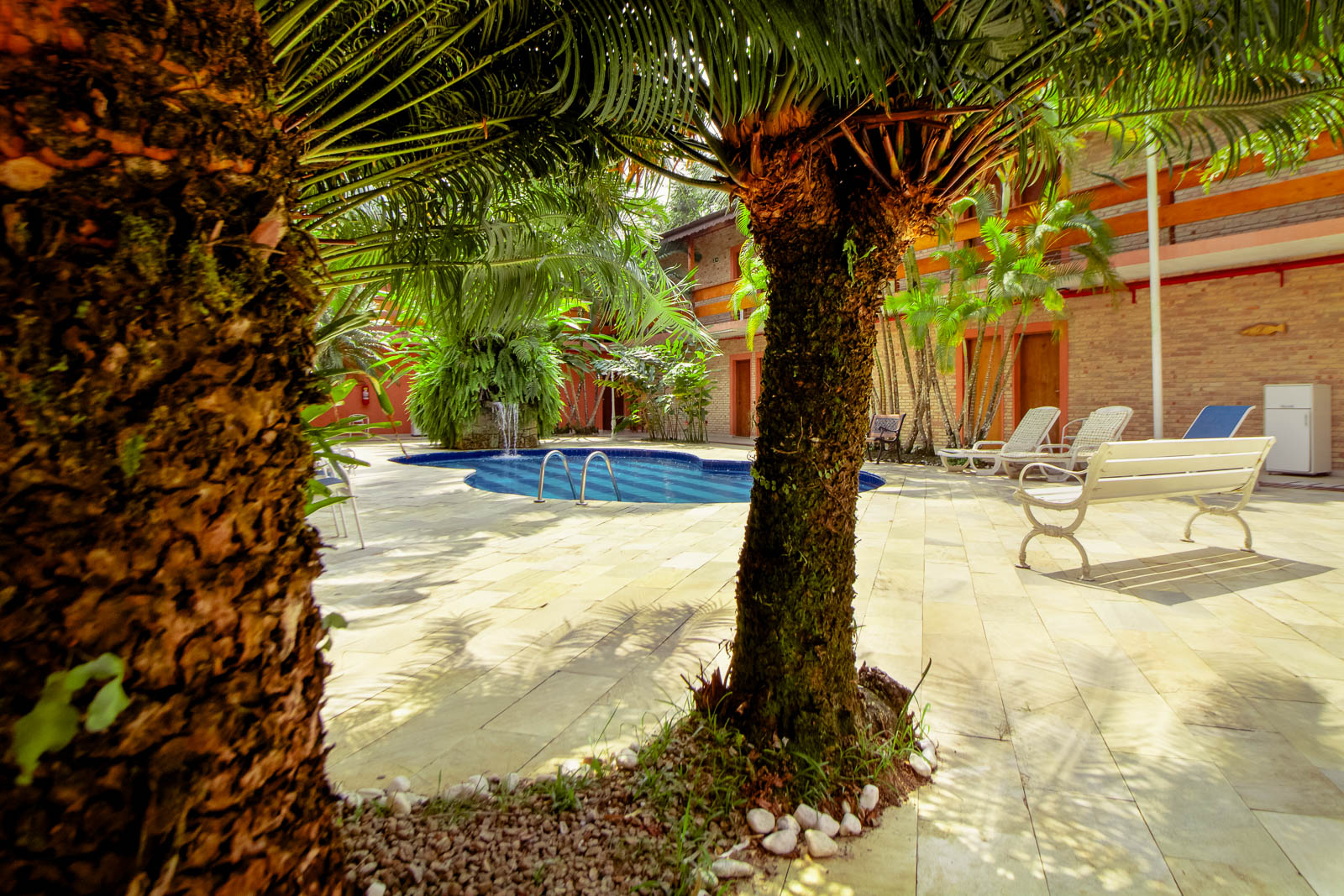 Desfrute de momentos únicos em nossa área de lazer, pensada para o seu descanso e bem-estar. Um ambiente arborizado, com piscina refrescante e confortáveis cadeiras de sol, perfeito para relaxar, renovar as energias e aproveitar cada instante da sua estadia.