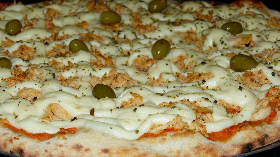 Sabores tradicionais: Muçarela, Calabresa, Marguerita, Portuguesa, Frango com Catupiry, Presunto e Queijo e Quatro Queijos.